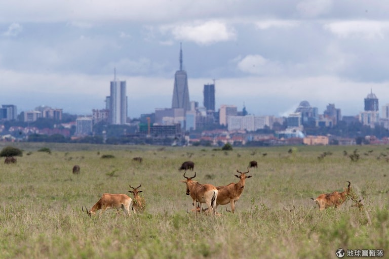 在首都奈洛比國家公園內,大草原的後方就是城市的天際線,都市與大自然間只有一線之隔。