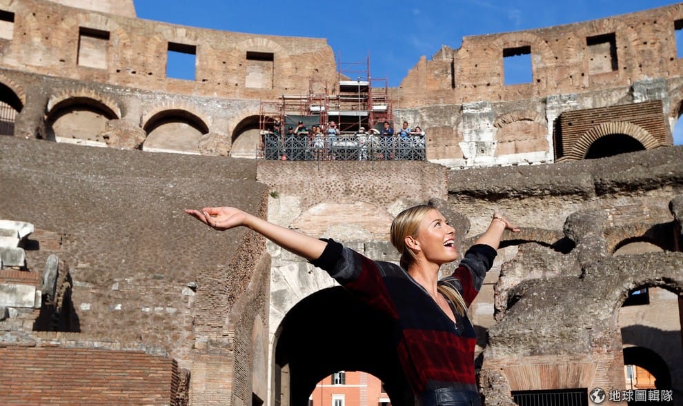 在羅馬著名地標競技場內,俄國網球明星莎拉波娃(Maria Sharapova)為了宣傳網球活動拍下一張張照片。