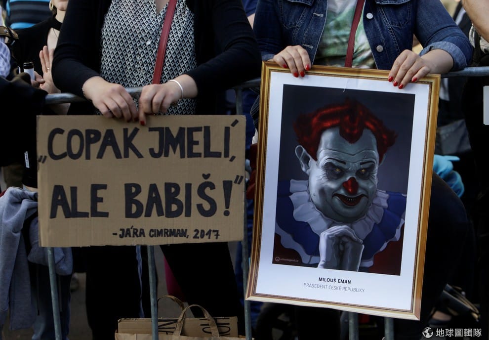 成千上萬的民眾在捷克各大城市抗議,要求捷克總統澤曼(Milos Zeman,右)盡快開除財政部長巴比斯(Andrej Babis)。家財萬貫的巴比斯涉嫌逃稅遭到人民唾棄,但至今他仍否認有任何不法拒絕請辭。