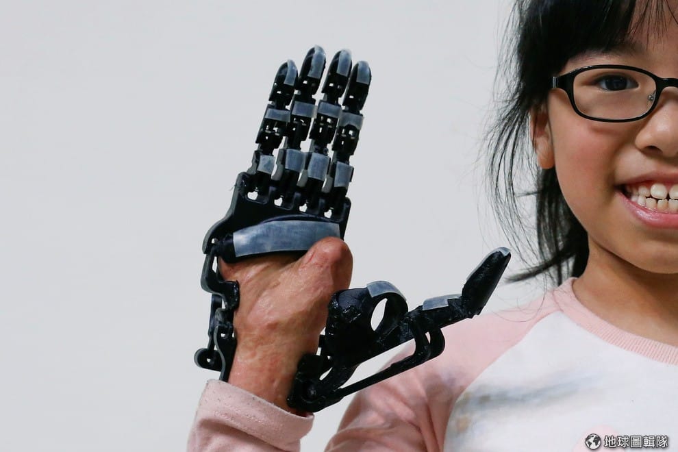 今年 8歲的Angel Peng九個月大時不慎燙傷,導致右手殘缺,然而在沖壓模具設計工程師張憲良設計的 3D列印義肢幫忙下,她可以開始處理生活上的大小事。