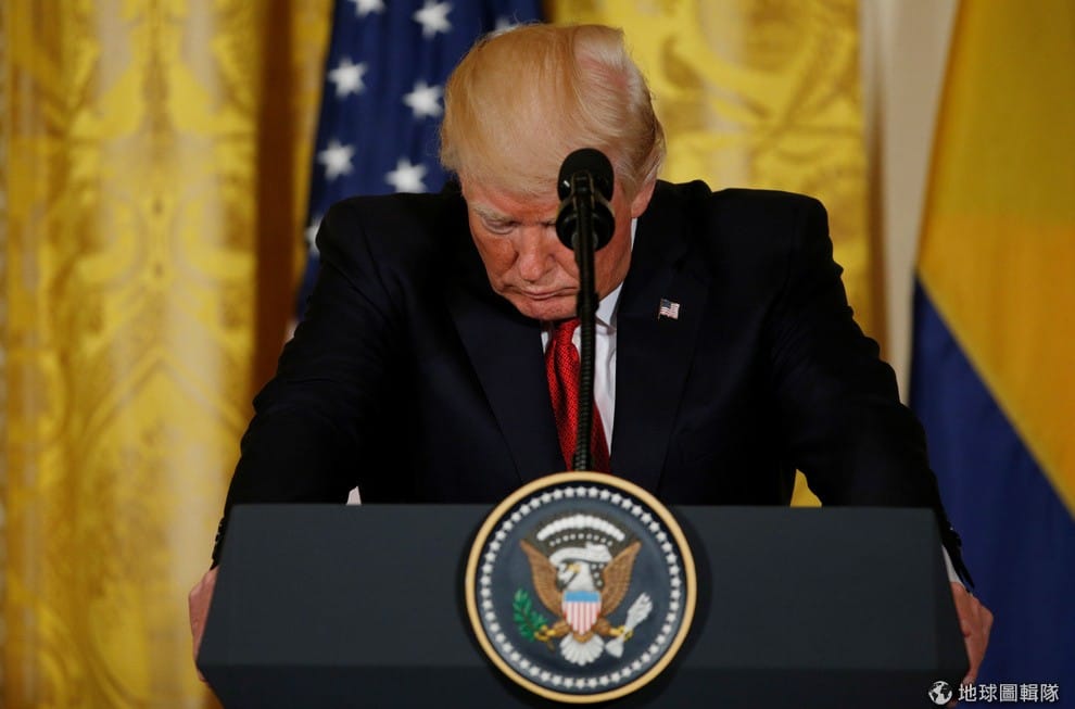 美國總統川普(Donald Trump)接待來訪的哥倫比亞總統桑多斯(Juan Manuel Santos),他們兩人也在白宮召開聯合記者會。