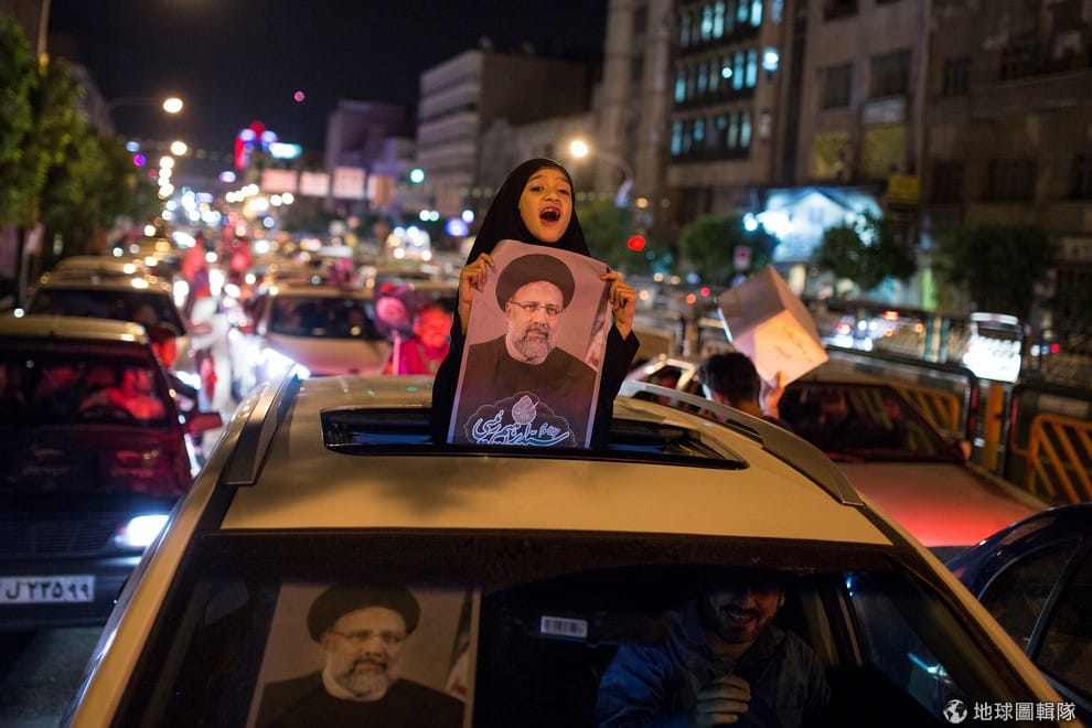 一名女孩手拿總統候選人萊辛(Ebrahim Raisi)的海報為他拉票,伊朗即將在 19號舉行四年一次的總統大選,這也將是伊朗和美國簽訂核協議以來的首場總統選舉。