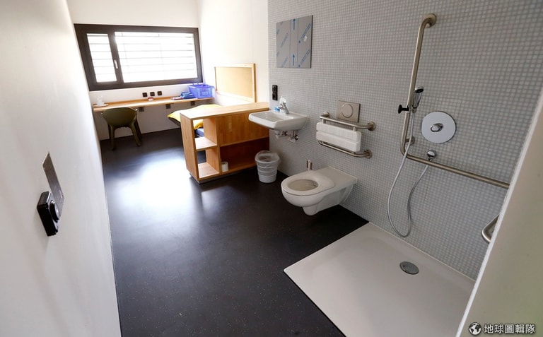 在瑞士北部的倫茨堡(Lenzburg)中央監獄,獄方向媒體展示他們專門為身心障礙的受刑人設計的單人牢房。