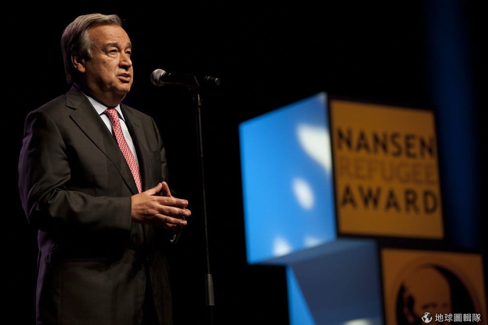 難民署高級專員Antonio Guterres向哈瓦女士致謝。J Tanner/UNHCR via Getty Images