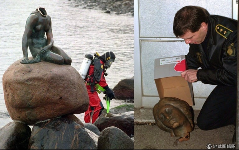 銅製的小美人魚雕像是在 1913年由丹麥雕塑家艾瑞克森(Edvard Eriksen)製作,藉此向安徒生(Hans Christian Andersen)的童話故事《小美人魚》致敬——但數十年來,它也成為許多人的抗議標的。