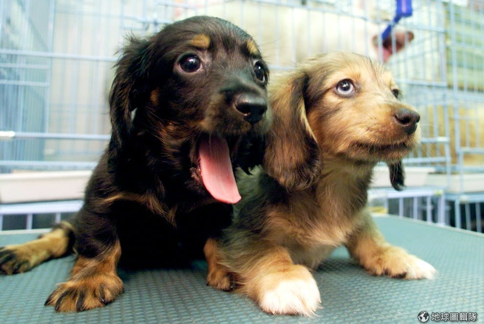 在 2002年香港的寵屋店,兩隻籠裡的狗狗正等著被租借。當時那家寵物店推出「先借養一周,再決定要不要買」的策略。