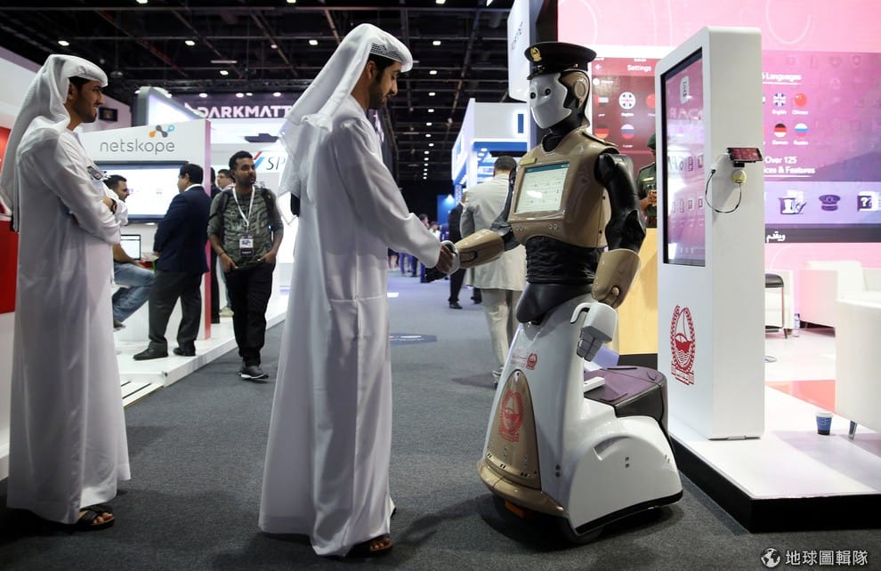 阿拉伯聯合大公國─和警察機器人握握手