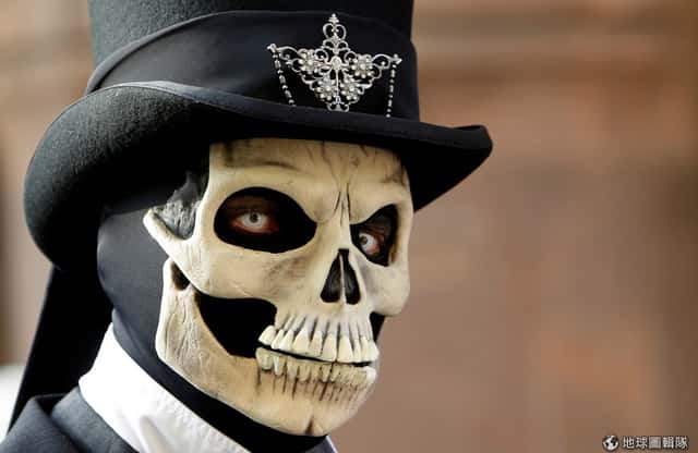 2號這天,一名民眾將自己打扮成骷髏紳士參加萊比錫歌德音樂節,特殊的裝扮吸引了不少眼球。