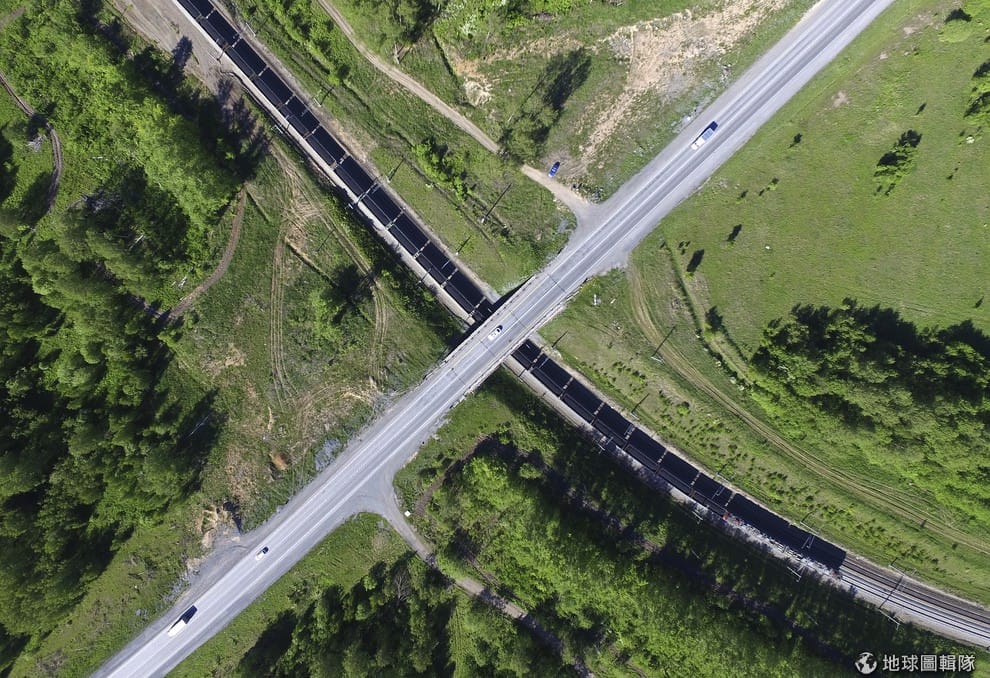 攝影師拍到了俄國火車穿過M53高速公路「貝加爾湖」(Baikal)的畫面,乍看之下就像火車被截成兩半。