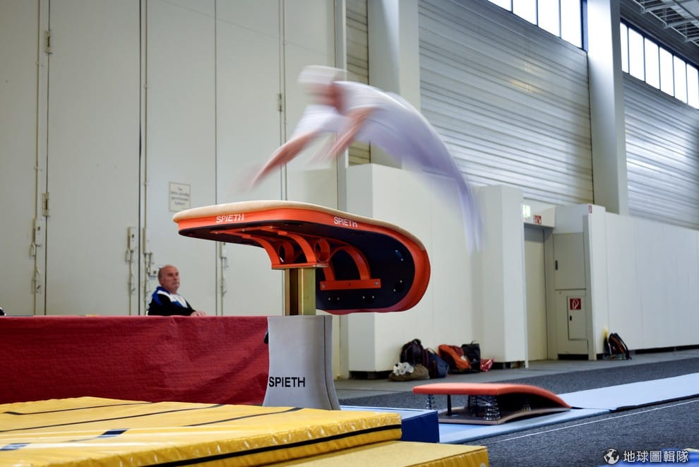 德國現在正值 2017年德國國際體操節(Internationales Deutsches Turnfest 2017),在這個為期一周的活動中除了可以觀看體操表演,民眾也能親自參與體操賽。圖為攝影師剛好紀錄下參加者奮力躍過跳馬的瞬間。