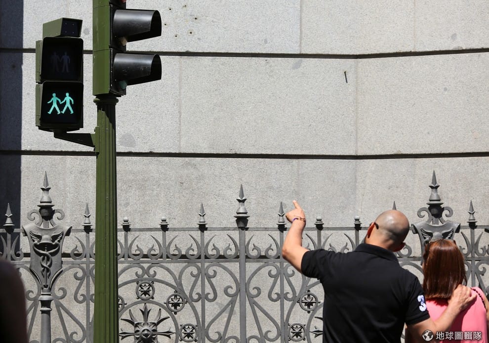 西班牙首都馬德里(Madrid)即將舉辦 2017同志大遊行,配合即將到來的活動,街頭的行人燈號也被替換成同志伴侶的圖像。