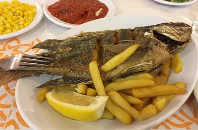 以色列境內有知名的加利利湖是聖經的重要場景,耶穌的門徒彼得就是在這裡打魚。餐廳應景提供「彼得魚」(圖),大獲基督徒旅客青睞。