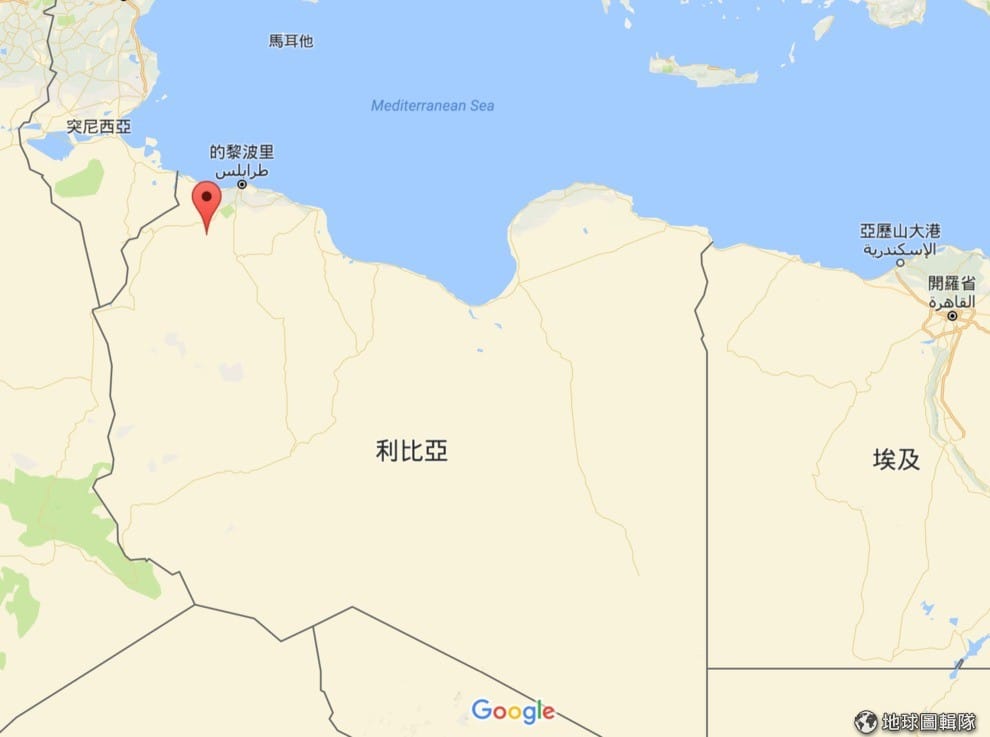 圖中標記處即為津坦,也是賽義夫這 6年來被關押的地方。