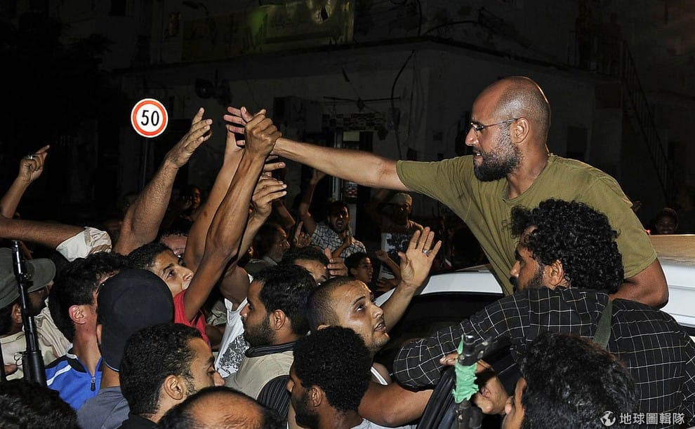 2011年 8月,賽義夫正在和他的支持者打招呼。就算格達費政權已經垮台,賽義夫在利比亞仍有著一定的知名度。