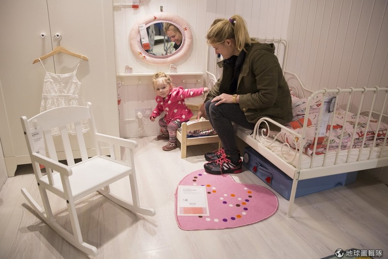 一名顧客帶著她的孩子瀏覽著IKEA設計的樣品房間。IKEA有符合不同空間想像所設計的房間,而他們現在決定讓設計有更進一步的發展。