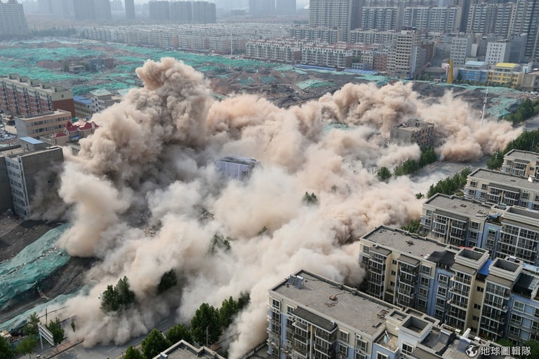 在河南省鄭州,層層高樓在被控制的情況下陸續瓦解,這裡準備要進行城市再造。