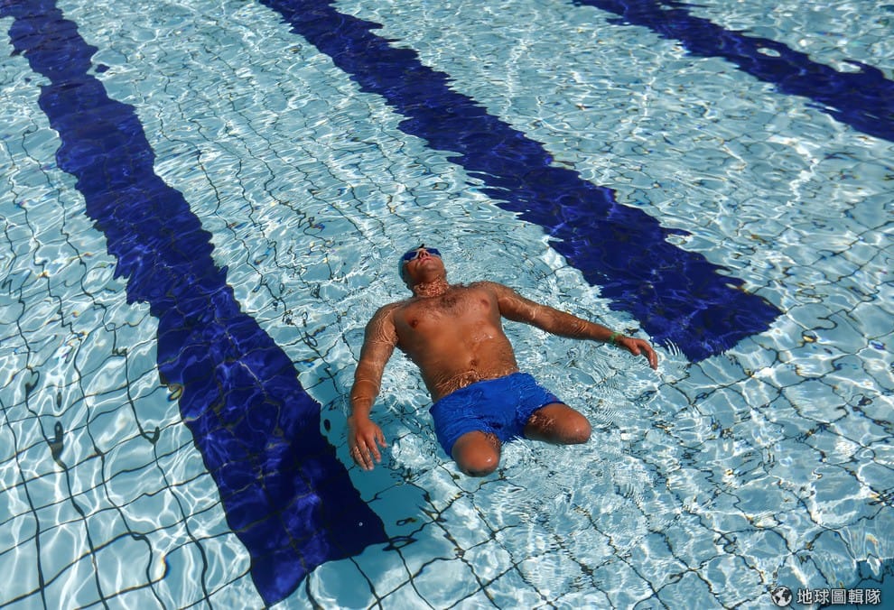 在阿富汗首都喀布爾(Kabul),24歲的穆罕默德(Malik Mohamma)在仰躺在泳池休息。