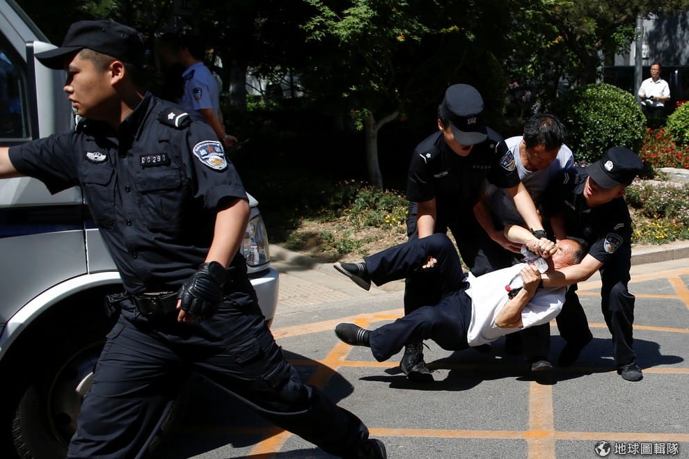 警察正準備拘留一名示威人士。一群民眾最近走上北京的街頭抗議,因為不滿政府打算把他們的小孩重新分配到另一間他們不想要的學校。