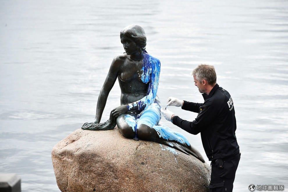 在丹麥哥本哈根,警察正在調查被潑上藍漆的小美人魚雕像。這是小美人魚雕像這周第二次被人潑漆,當地政府則批評這是破壞公物的行為。