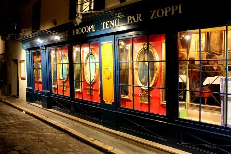 巴黎現今營運中的最古老咖啡館,是位於第六區的普羅柯佩咖啡館(Le Procope),自1686 年起營業至今,已有331年歷史, 曾在這裡出入的名人包括作家伏爾泰(Voltaire)、哲學家盧梭(Jean-Jacques Rousseau)、詩人韋蘭(Paul Verlaine)和穆塞(Alfred Musset)等,一時風華可以想見。