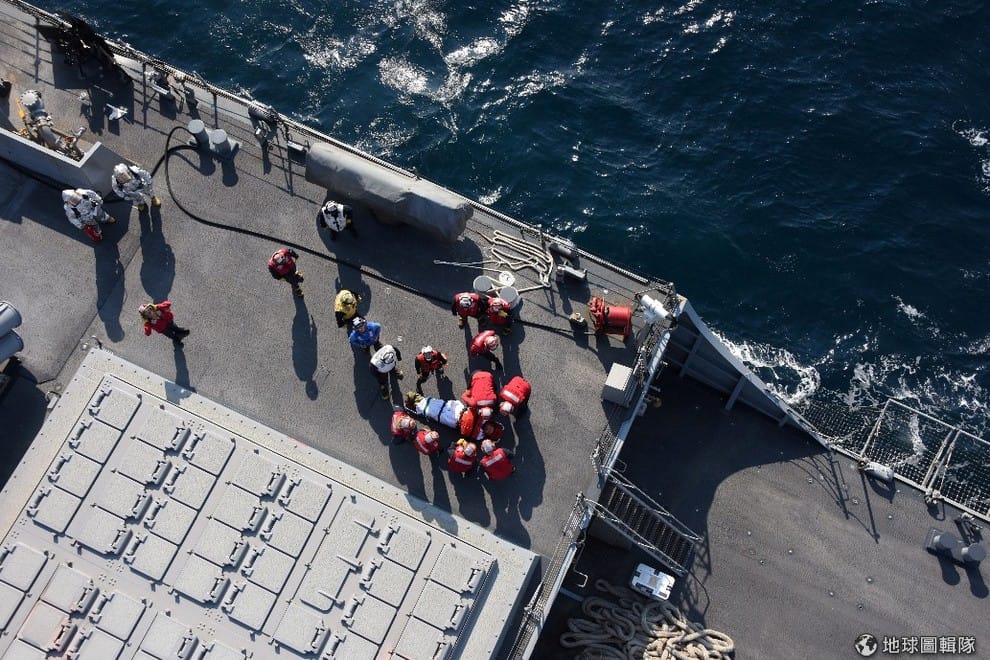 日本海上自衛隊的成員正在協助搬離驅逐艦上的受傷船員。驅逐艦的艦長班森(Bryce Benson)與其餘受傷船員均已經被送往位在橫須賀市美軍基地的美國海軍醫院治療。