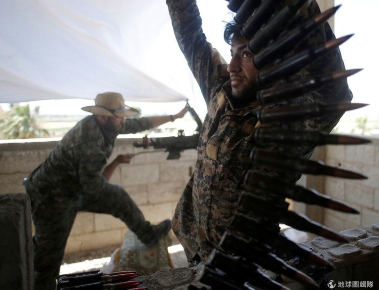 在敘利亞拉卡市(Raqqa),一名庫德人民保護聯盟(People's Protection Units,YPG)的戰士正在填充彈藥,準備為攻擊恐怖組織伊斯蘭國(IS)做好準備。