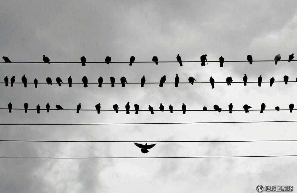 在斯里蘭卡首都可倫坡(Colombo),無數隻鴿子正在電線上休息著。