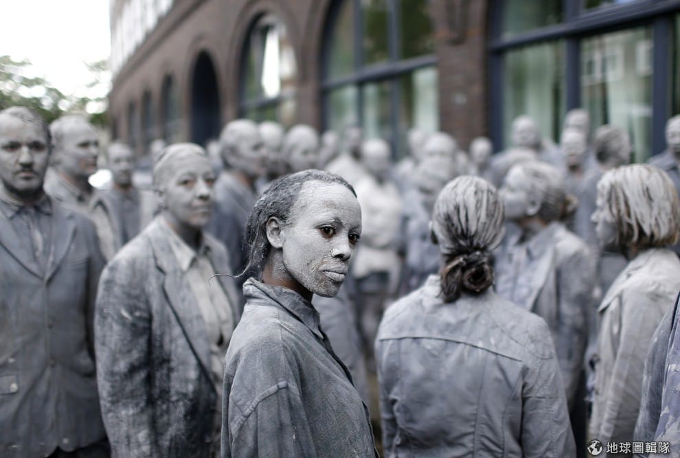 在即將舉行G20峰會的德國漢堡(Hamburg),抗議G20高峰會的表演者將全身塗滿白粉,上街遊行示威。