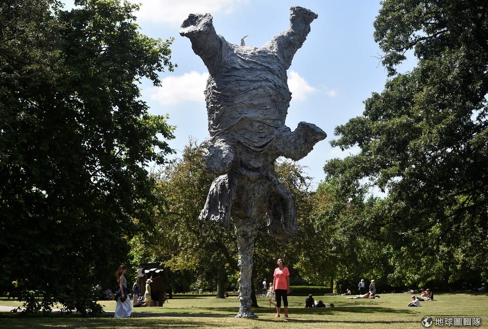 在倫敦弗里茲雕塑展(Frieze Sculpture exhibition)上,一名女子看著西班牙藝術家巴塞洛(Miquel Barcelo)的雕塑作品「大象」(Gran Elefandret)。