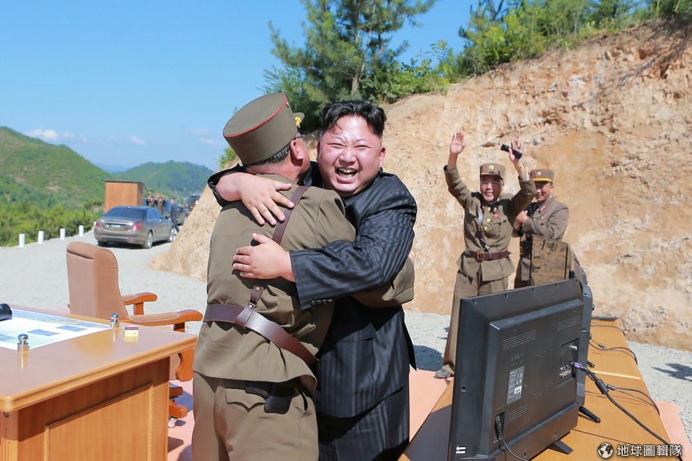 在這張北韓近日釋出的照片中,北韓領導人金正恩開心地擁抱國防科學院工作人員,慶祝北韓洲際彈道飛彈「火星-14型」(Hwasong-14)成功升空。根據北韓的官方聲明,這枚洲際彈道飛彈可以成功攻擊到美國本土,消息一出立刻牽動鄰國敏感神經。