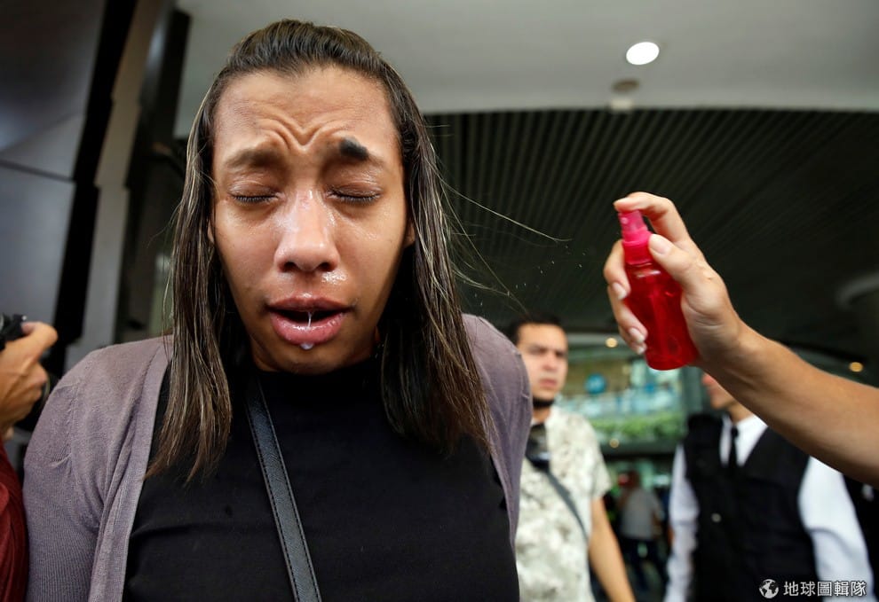 一名女子在抗議總統馬杜洛(Nicolas Maduro)的現場遭到鎮暴警察以催淚瓦斯攻擊,一旁的民眾趕緊往她的臉上噴灑清水洗去刺激性物質。
