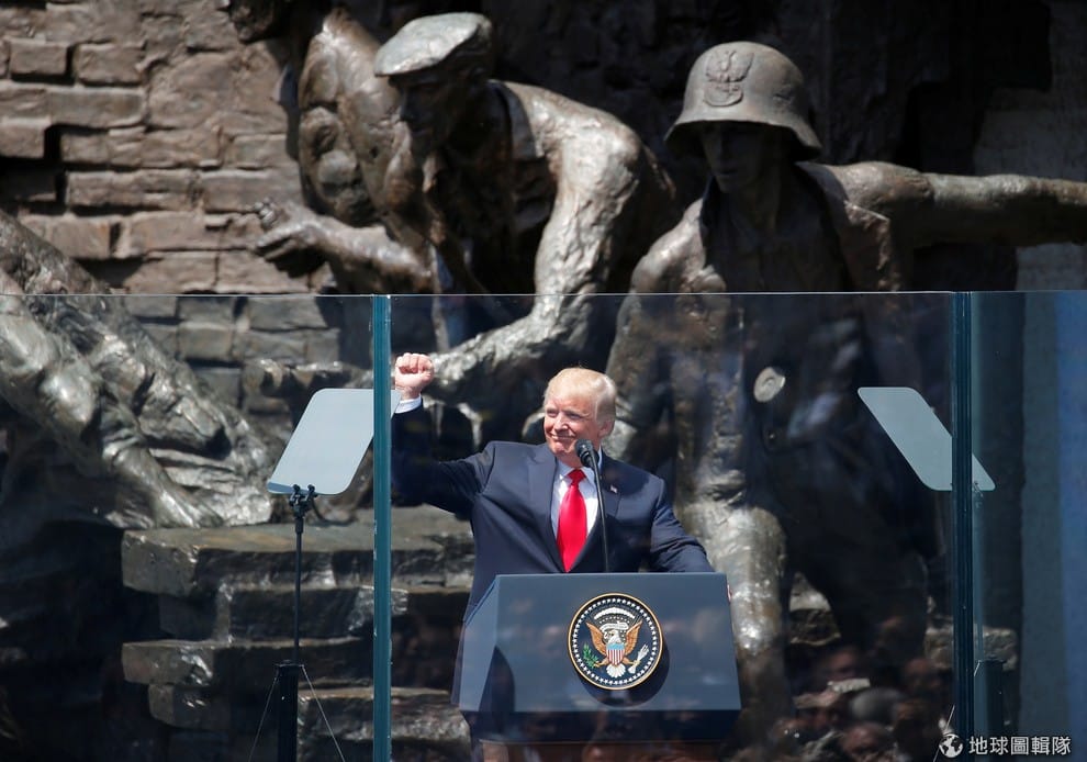 6號這天,美國總統川普(Donald Trump)來到首都華沙的克拉辛斯基廣場(Krasinski Square)發表演說,重申美國對東歐國家的支持,他的身後是紀念波蘭人在 1994年起義反抗納粹佔領的紀念碑。