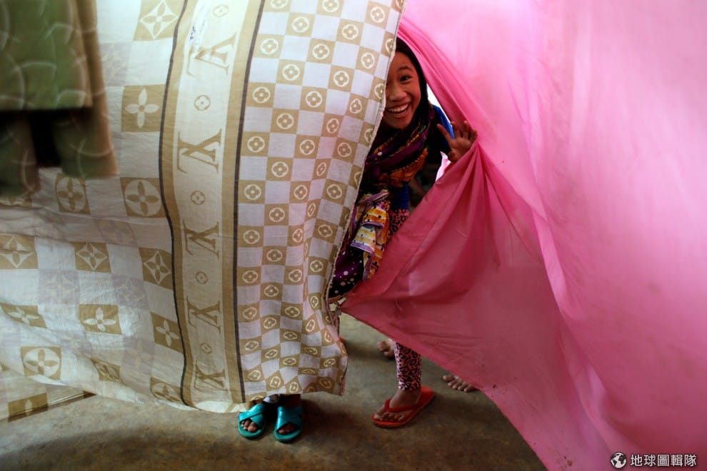 在南部民答那峨島(Mindanao)馬拉韋市(Marawi City)的撤離中心,孩子們在床單間嬉戲,因為政府軍和親伊斯蘭國(IS)武裝組織「馬巫德」(Maute)對戰而回不了家的民眾,都被當局集中到了撤離中心。