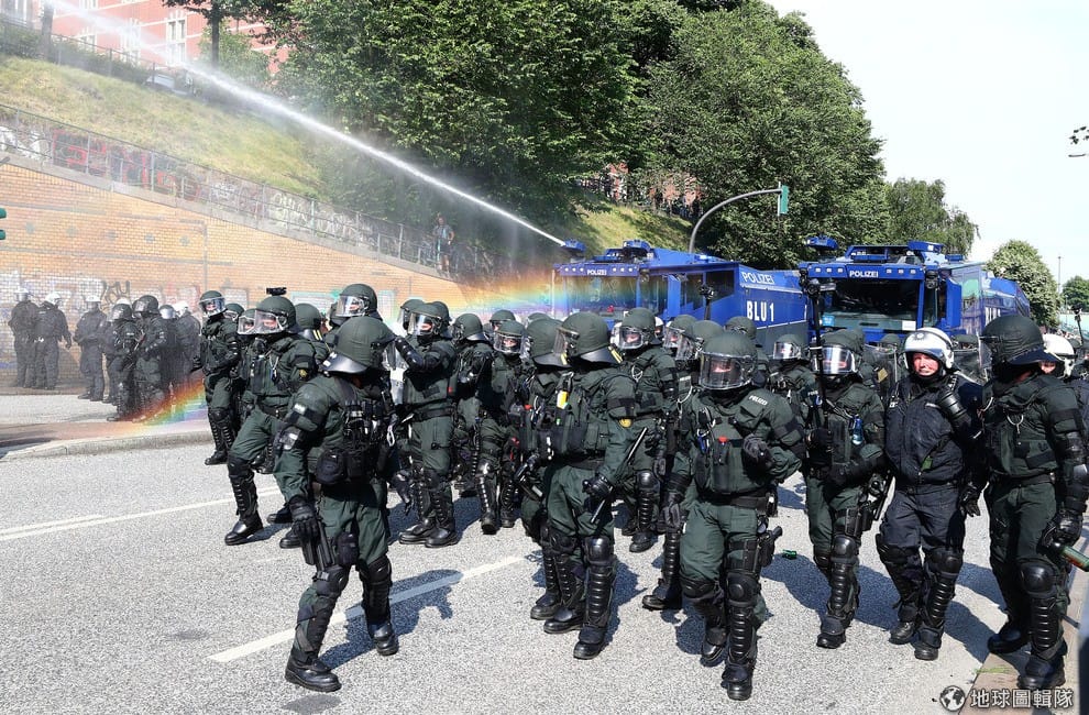 在G20高峰會舉辦的漢堡市,當局為了避免抗議民眾擾亂會場,出動了大批鎮暴警察和水車維持秩序。