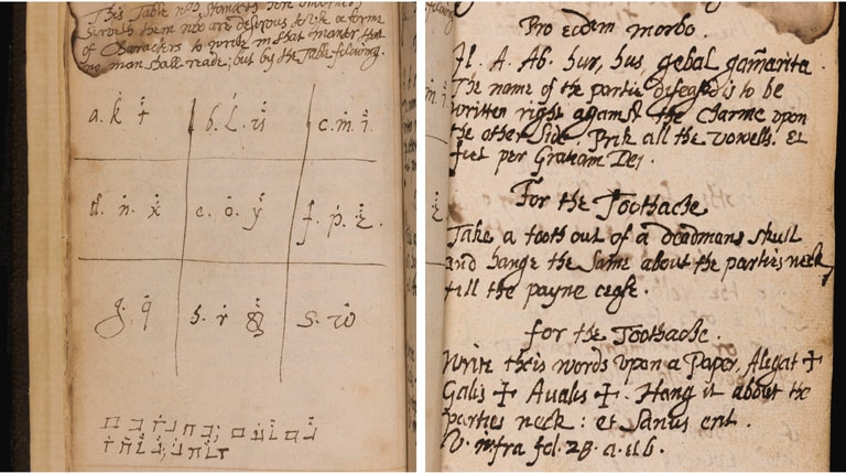 被放在網路上的手抄本一個有三個版本。第一本是來自 17世紀的《神奇魔咒之書》(Book of Magical Charms),該書顧名思義,記載了各式各樣施法的方式,像是如何召喚靈魂、跟幽靈說話等等和超自然現象有關的巫術,而書中也有像是如何出老千、牙痛能用死掉的男人牙齒根治等「日常」術法。此外,《神奇魔咒之書》裡頭也有用拉丁文寫下主流宗教在祈禱時會使用的連禱文。