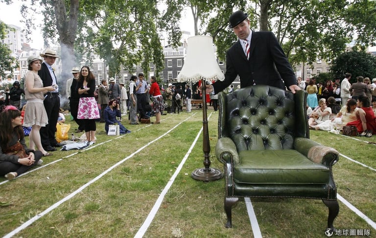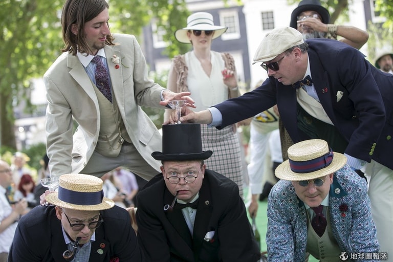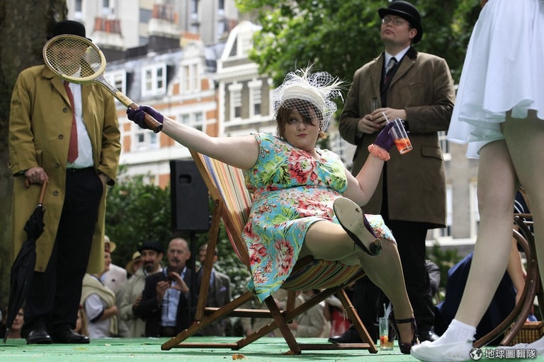 在這個被譽為「英國最奇怪的花園派對」上,你可以在現場配樂、雞尾酒的陪伴下參加 11種奧林匹克遊戲,不過有別於能不能拿出好成績,參賽者更在意的是自己的西裝褲折痕有沒有燙好燙滿,畢竟比起運動技巧,評分標準更在意的是你在運動會上的紳士風度如何。