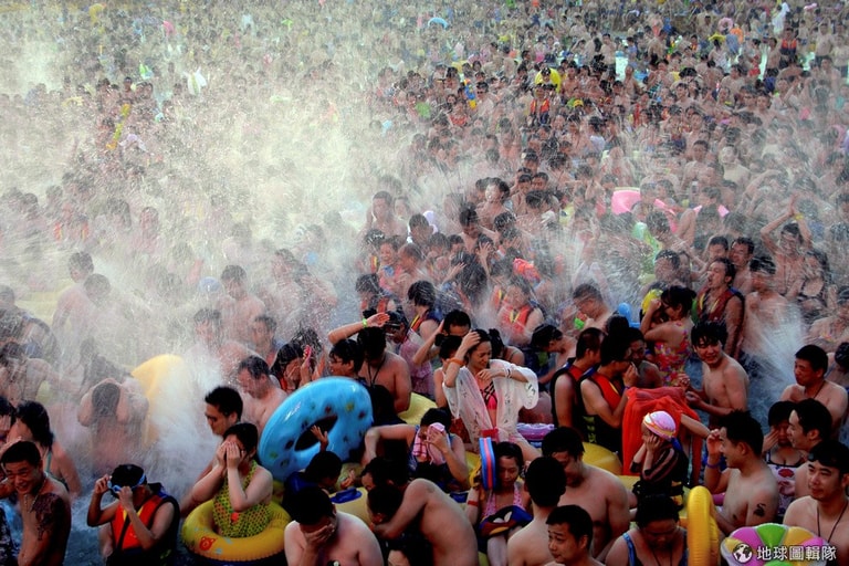 在 7月炎炎夏日,大批人潮紛紛跑到湖北省武漢市的水上樂園消暑,為遊樂園帶來摩肩擦踵的盛況。