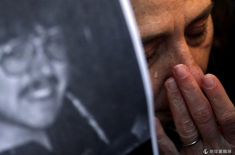 一名女子手上拿著受害者的照片低頭哭泣。1994年,阿根廷首都布宜諾斯艾利斯(Buenos Aires)的阿根廷以色列互助協會(Argentine Israeli Mutual Association, AMIA)發生爆炸,造成 85人死亡,是阿根廷最嚴重的爆炸事件。在那之後,每年都會有人到現場悼念這些受害者。