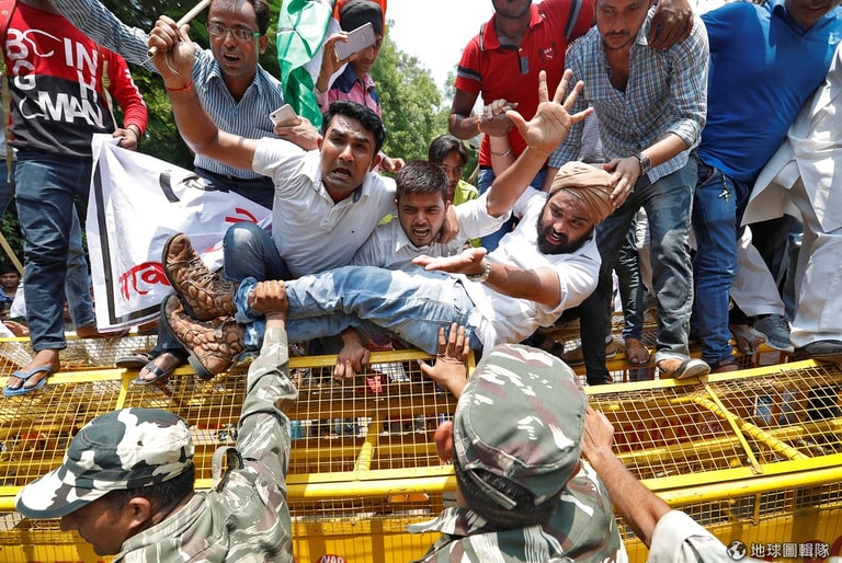 抗議「商品服務稅」(Goods and Service Tax, GST)的人們與警察爆發推擠衝突,印度在最近通過了統一各邦的新稅制「商品服務稅」,由於該稅制會讓一些物品的稅率大升,因此引起部分印度人不滿。