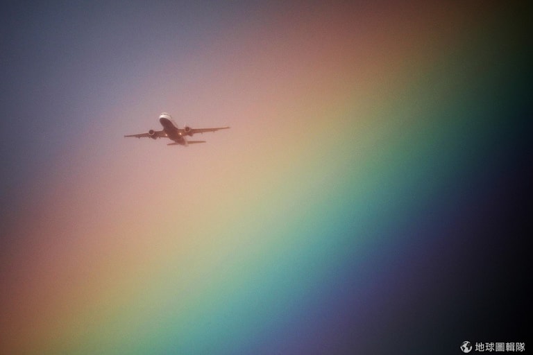 一架飛往倫敦希斯洛機場的飛機準備穿越彩虹,奇妙的景象被鏡頭捕捉了下來。
