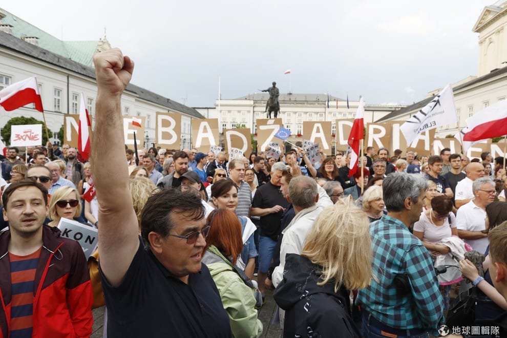 大批民眾聚集在首都華沙的最高法院前,抗議國會最新通過的法案,該法案讓政府有權撤換所有最高法院的法官,示威民眾認為這部法案違憲,大開民主倒車。
