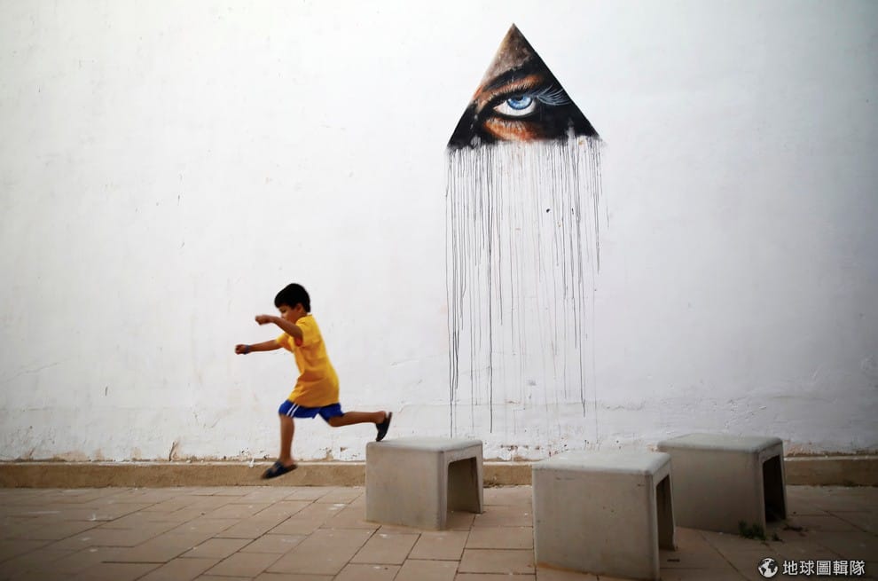一名小男孩在畫有塗鴉的牆面前玩耍。目前卡拉並沒有給出明確的禁止時程。