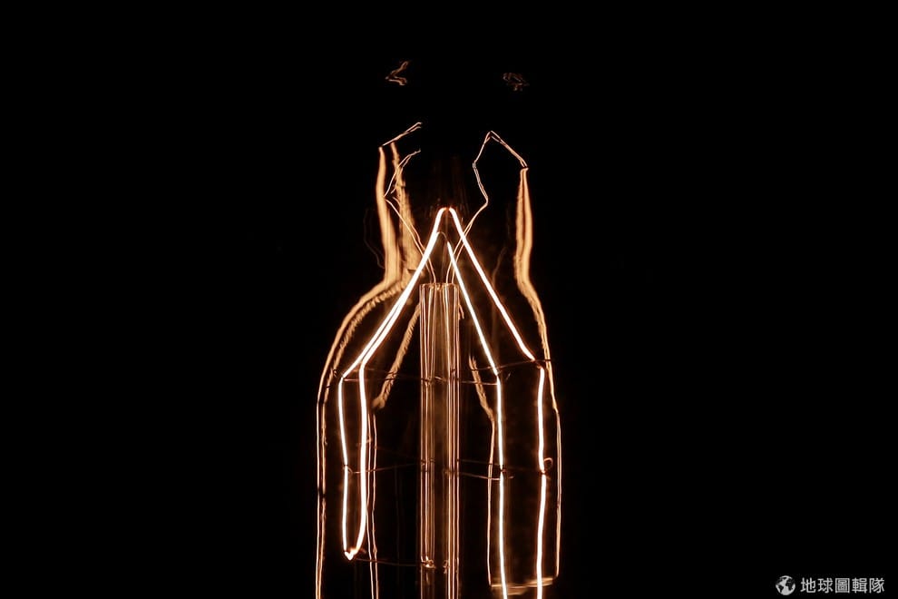 攝影師近距離拍下了鎢絲燈內部的光線軌跡。