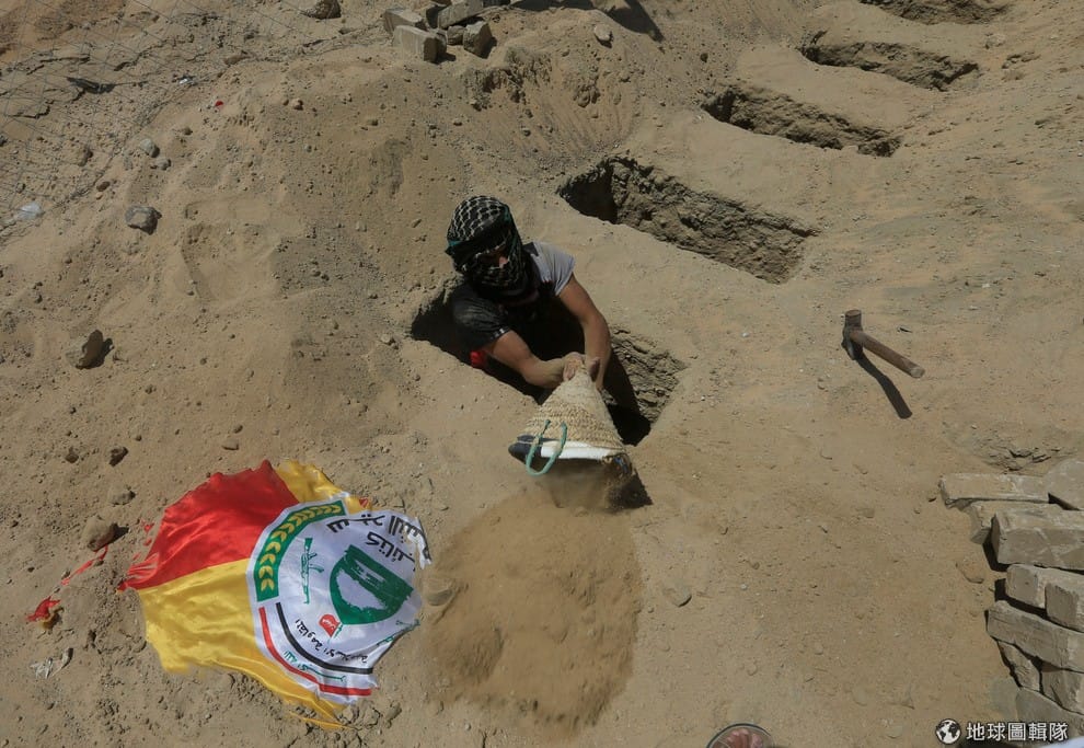 在伊拉克城市納傑夫(Najaf),一名男子正在為伊拉克什葉派的戰士挖掘墳墓。