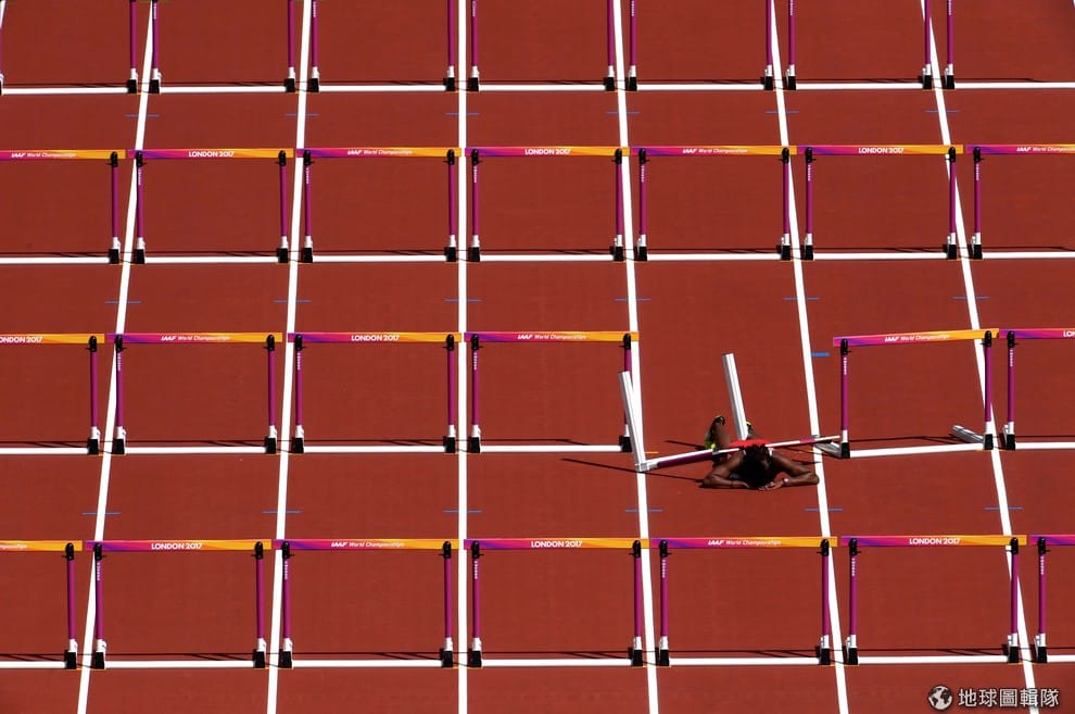 在倫敦的世界田徑賽上,來自千里達及托巴哥的選手在進行女子 100公尺障礙賽跑時,不慎跌倒並一頭撞到了路障,隨後工作人員也緊急把她帶到一旁接受照護。