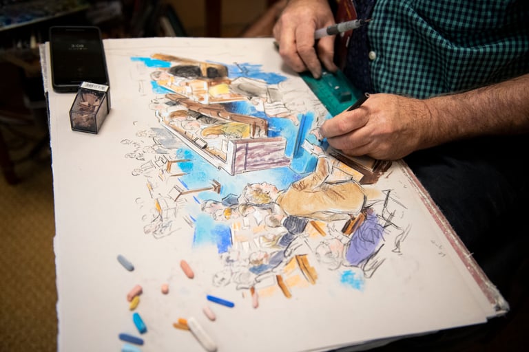 小軒尼詩也把法庭畫家這項職業拿來和法庭記者比,他說:「如果用新聞來想,你為報導提供了畫面,你想要呈現背後的脈絡,畫出開庭時的感覺。」
