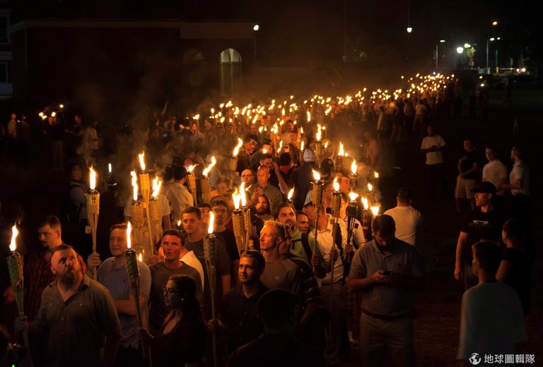 上周五(11)晚上,數百人聚集在維吉尼亞大學,抗議市政府打算移除雕像的決定,他們手持火炬,喊著「白人的命也是命」(white lives matter)、「鮮血和土地」(blood and soil,編註:納粹時期的意識形態口號),強調自己是為白人的權益發聲。