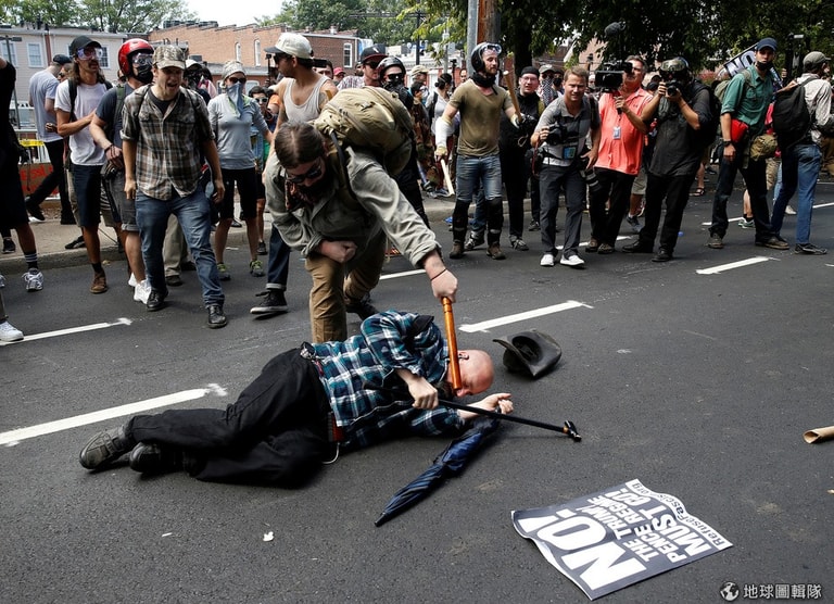 到周六(12)早上,在白人至上主義部落客凱斯勒(Jason Kessler)的號召下,來自美國各州的白人至上主義者、新納粹分子、3K黨成員、法西斯的支持者以「聯合右派」為名,聚集到維吉尼亞州夏律第鎮抗議。