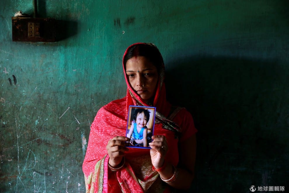 31歲的辛格(Rinki Singh)手上拿著 6歲女兒的照片,她的女兒在 10號晚間於重症監護室死亡。