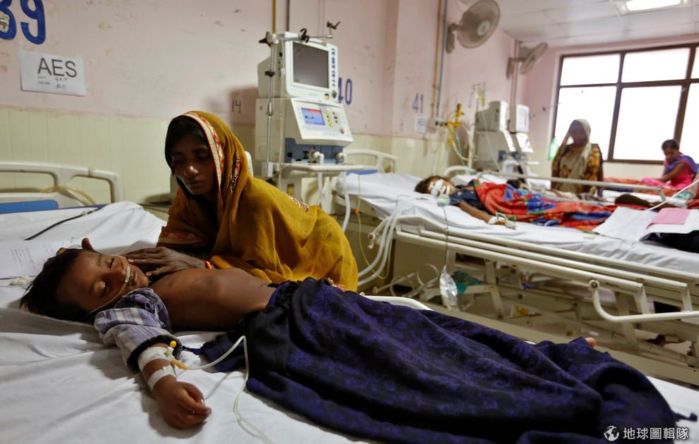 腦炎是一種造成腦部腫脹的急性炎症,通常是經由病毒感染。在印度,每年都會造成數百人死亡,雨季的時候尤其嚴重。根據BRD醫院的紀錄,該院院內有 450名病人感染腦炎,其中有 200人不到 12歲。